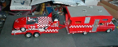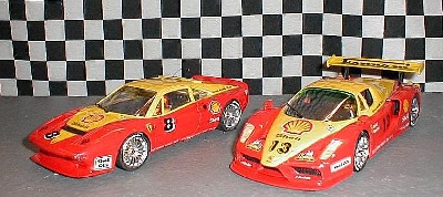 Hierbei handelt es sich links um einen Ferrari 288 GTO und rechts um einen Ferrari Enzo. Beide Fahrzeuge wurden nach dem Reglement der NDTSW ( Reglement siehe www.scaleracing-norddeutschland.de/Reglements) aufgebaut. Sie sitzen beide auf einen Schöler Metallchassis und werden mit einem Fox Motor angetrieben. Für die nächste Saison wird sich zu ihnen noch ein Dritter Ferrari,nämlich ein 612 Scagletti, hinzugesellen. Gleichzeitig wird es einen F355 Renntransporter geben. Hierzu demnächst mehr in der Rubrik Bauprojekte.